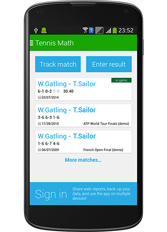 If you sign in and synchronize, your data will be safely kept on Tennis Math server. You get a regular back-up and also the option to share the data between multiple devices.