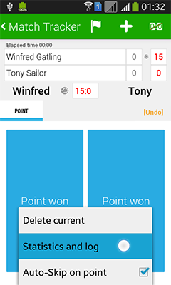 Quite often you might need to change or delete your previous inputs. Players may decide on the service or point outcome differently, or you may have missed the correct button.