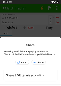 However, if you want to share a detailed match report, you have to sign in and synchronize your finished matches with the server. After the match is on the server, everybody can view it with a secure link, which looks like this: http://app.tennis-math.com/report/TTJRd09URXg.