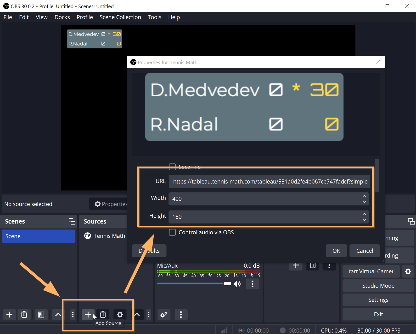 Want to live stream a tennis match with the latest score overlay? Tennis Math lets you do it easily with any video streaming software!